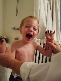 The weather has been beautiful for the most part. We spent a lot of time at various playgrounds, checking out a new favorite spot in Ellicott City. We wrapped up our gymnastics classes at Sokol, with CharliePop joining us for the last class. Isaac participated even more than usual, doing all of the stretches, counting out loud with Ms. Ronnie, and even chiming in to share which pizza toppings should go on the pizza we were "making" (hot dogs!?). We had a few visits with Uncle Tony, where Isaac enjoyed sharing his books and raiding his cabinets for bananas.